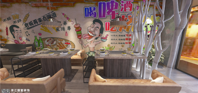 杭州市西兴400平方米烧烤店设计公司-浙江国富装饰