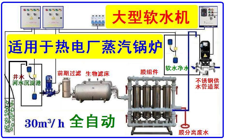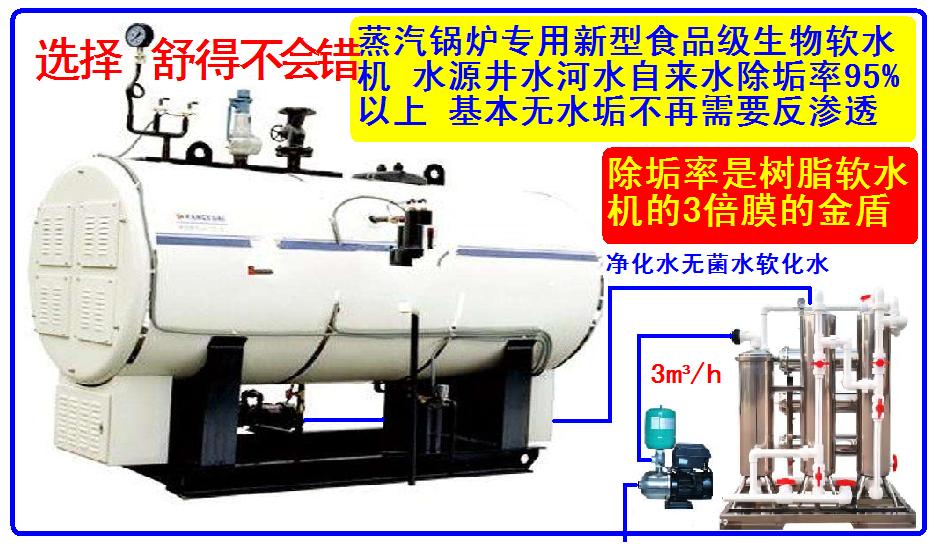 水处理设备食品级生物软水机适用于供暖锅炉热电厂高压锅炉配置 ,多年来很多企业在没有办法的情况下只能使用树脂软水机(大家可以在网上查查看那家阳离子树脂阴离子树脂的使用说明有提到过哪种树脂有软化功能的、有去除钙离子镁离子功能的、市场上不知道是怎么出现这样的理论的、而且还树脂软水机被吹捧这么多年、人家树脂厂不声明不过是装疯卖傻罢了)、树脂软水机的价格是不高、但是效果绝对不行、所以有绝对资本的企业就选择了昂贵的反渗透来代替软水机、因为市面上的反渗透前期处理还是依靠树脂软水机及普通的石英砂过滤器和活性炭过滤器、但是同样出现了不少缺点,1、树脂软水组同样需要经常要用试剂检测树脂什么时间失效,2、石英砂过滤器组其实什么作用也起不了,3、活性炭过滤器组使用寿命只能是3-6个月、失效后一点作用也没有必须及时更换,所以反渗透膜的保护其实等于零、反渗透膜的使用寿命大大宿短通量稳定期z好的也就6-10个月、以后产水也就逐渐变小直到堵死。现在很多精明的企业又多了一个选择、舒得公司的净水设备经过多年的认证已经足以保证净化出来的水除垢效率高达到95%以上而且可以直接处理井水河水达到高压锅炉想要的无垢水、直接代替了反渗透。如果有的企业还是不放心可以选择把反渗透链接在舒得净水设备后面、把舒得净水设备代替前期就可以了这样反渗透膜就可以使用z少10年因为没有水垢了膜孔就不会被堵死了。