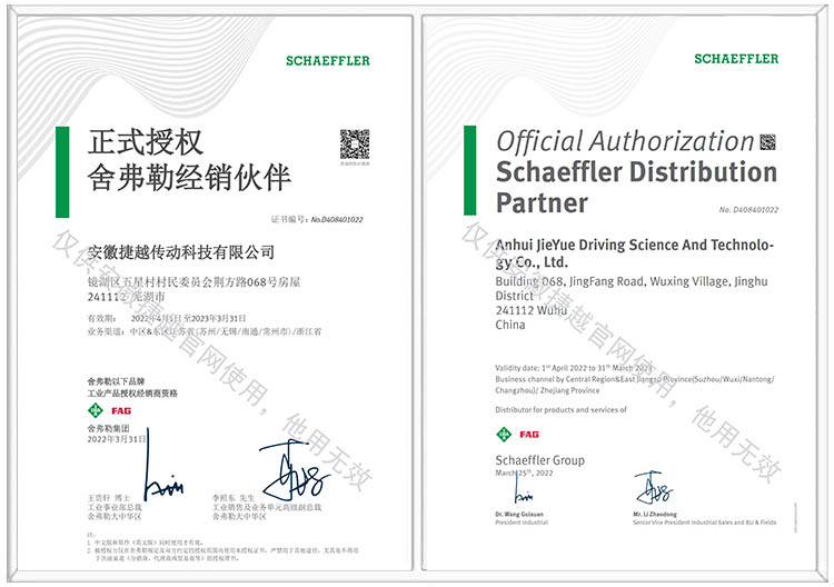 舍弗勒授权证书
