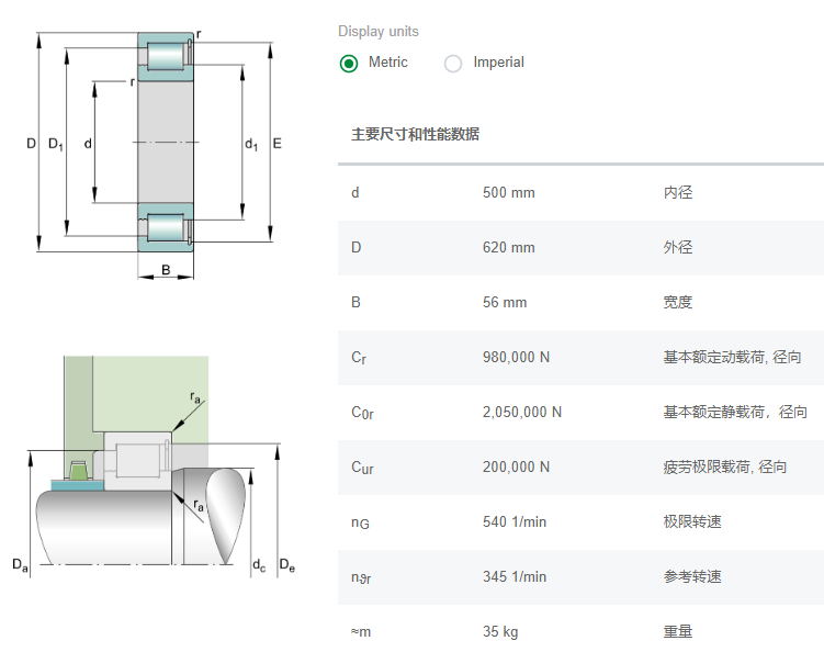 SL1818/500轴承数据