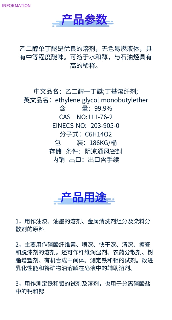 山东乙二醇单丁醚厂家现货出口供应 高纯乙二醇一丁醚一桶起售 各大港口均可安排