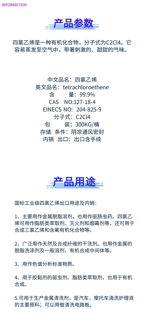 工业级四氯乙烯厂家出口供应 山东全氯乙烯桶装供应 新桶包装 FOB CFR EXW 多种包装满足客户的不同需要