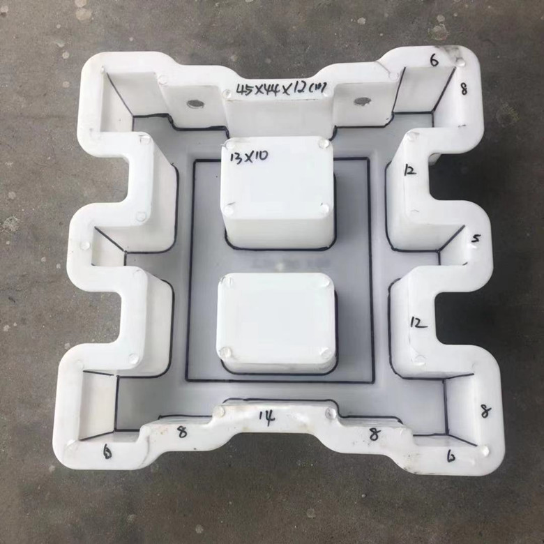 连锁块模具,水泥连锁块是用一种外形大小和重量一致的水泥预制块,经过互锁式的结构设计,相互七块可连接成一个连锁型的矩阵。整个连锁矩阵铺设在基坑上,经过互锁连接成强有力的护坡面,结构的稳定性比三角形更强。连锁块通过相互之间的摩擦力和垫层的接触而达到稳定效果,再受到水浪的冲击下也可以稳定不动。这是别的预制砌块无法达到的,但是连锁块一旦有一块出现破坏,那么整个矩阵都会受到破坏。