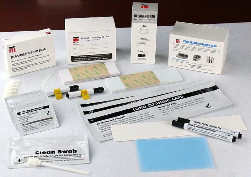 深圳美迪帝自主生产的多种清洁卡、IPA酒精清洁擦拭布、IPA酒精清洁笔、IPA酒精清洁棉签、清洁轮、粘尘卡、研磨棒等多种耗材可用于Datacard、Evolis、Magicard、Zebra、Fargo多种知名品牌打印机以及证卡、热敏、标签、条码等多种类型打印机的日常清洁维护保养,延长打印机使用寿命,提高打印质量。