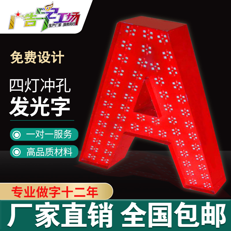 业务范围:led发光字平面发光字LED点阵发光字、LED冲孔发光字、树脂字、无边发光字、超级发光字、3D发光字、通体发光字、全彩发光字、高档炫彩发光字、迷你发光字、树脂发光字、特大铝板或其他金属板发光字、特大楼盘挂网发光字、LED亮化工程、金属精工字、金属烤漆字、水晶字及其他字;