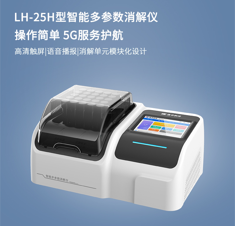 LH-25H智能多参数消解仪是科技自主研发的全新智能化水质消解仪,适用多种消解环境。5.6吋高清电容触屏操作,通过智能PID温度控制,大幅减小温度示值误差,提升温场均匀性。内置COD、总磷、总氮、高锰酸盐指数、硫酸盐、甲醛和自定义7种消解模式,适应多种消解实验需求。全新外观架构,保护罩内循环空气流动,消解池顶部航空隔热层设计让消解流程更b2b商务商务免费平台,中文智能语音播报、多色彩指示灯、引流槽设计、超温断电保护、上位机远程控制等功能让用户操作更简单、b2b商务商务免费平台、便捷。