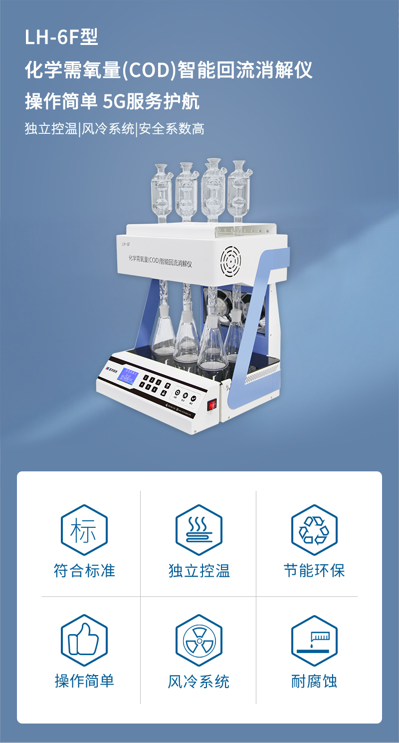 1.符合标准:依据环境标准《HJ828-2017水质化学需氧量的测定重铬酸盐法》的原理设计制造,同时兼顾原国标;