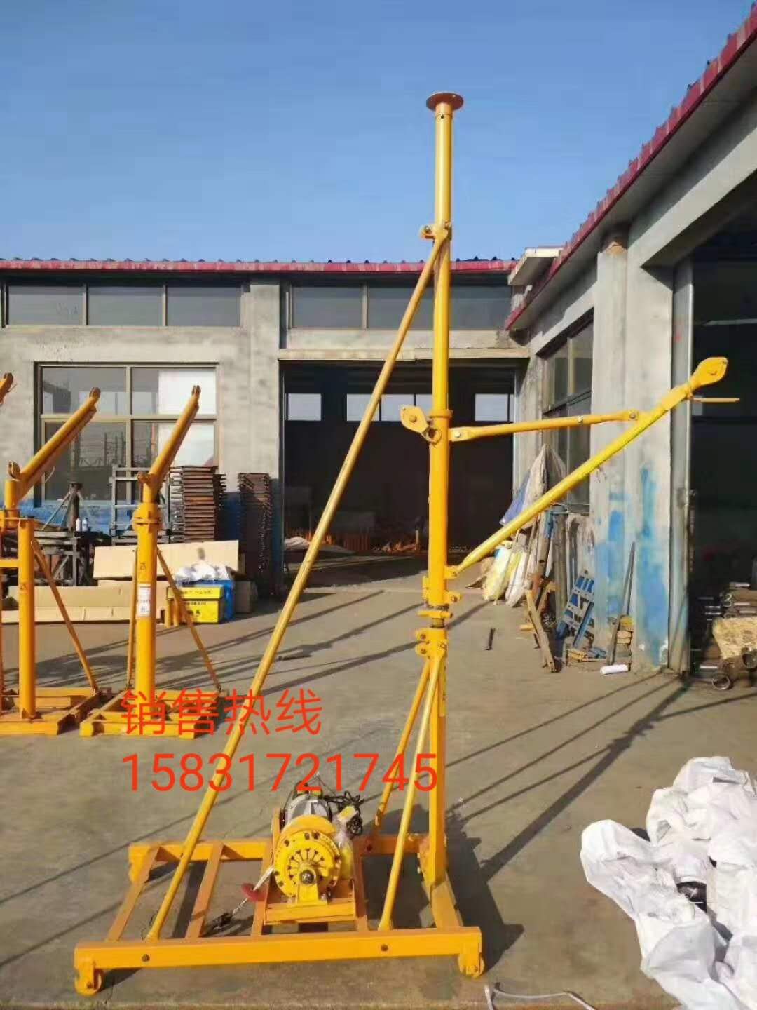 室内装修吊运机安装1.将杆顶帽上固定一块大于200×80×30的硬杂木,若装机底面光滑或软质地面还要备主机衬垫(如下有地暖,要备一块大于600×300×50的木板)垫于主机下面。2.立杆插于螺杆上(若在窗台上,空间小时可装半立杆,空间大时可加装接杆,接杆也可往螺杆下面装,螺杆也可往立杆上面装);3.深圳供应室内装修吊运机可工作2-3小时室内装修吊运机夹紧器装于立杆上;4.装推力轴承于立杆夹紧器上面;5.调整拉臂绳长短以适应所吊物件,然后装转动臂于立杆上(推力轴承上面);6.装带木板的杆顶帽于立杆顶端。7.将装好的支架部分插入主机底座孔中,拧紧千斤螺母紧顶上端支承面。(注意:必须使支架立杆铅垂)8.调整夹紧器位置,使转动臂的高低适当。一定要拧紧夹紧器螺丝
