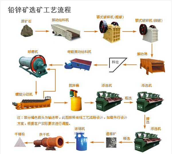 1、选铅锌矿设备将铅锌矿进行磨矿,使粒度为-0.1mm的占50%~80%