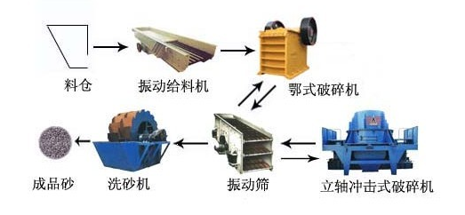 该生产线自动化程度高,运行成本低,破碎率高,节能,产量大,污染少,维修简便,生产出的机制砂符合国家建筑砂标准,粒度均匀,粒形好,级配合理。