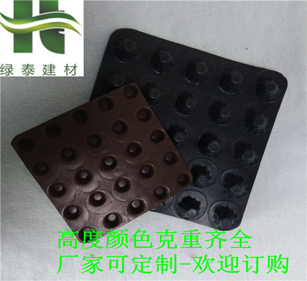 排蓄水板聚乙烯HDPE聚苯乙烯PVC凹凸型塑料排水板材料本身就是一种很好的防水材料。通过采用可靠的连接方式,使防凹凸型塑料排水板成为一种很好的辅助防水材料。凹凸型塑料排水板的保护防护性,又可蓄水的一种轻型板材。