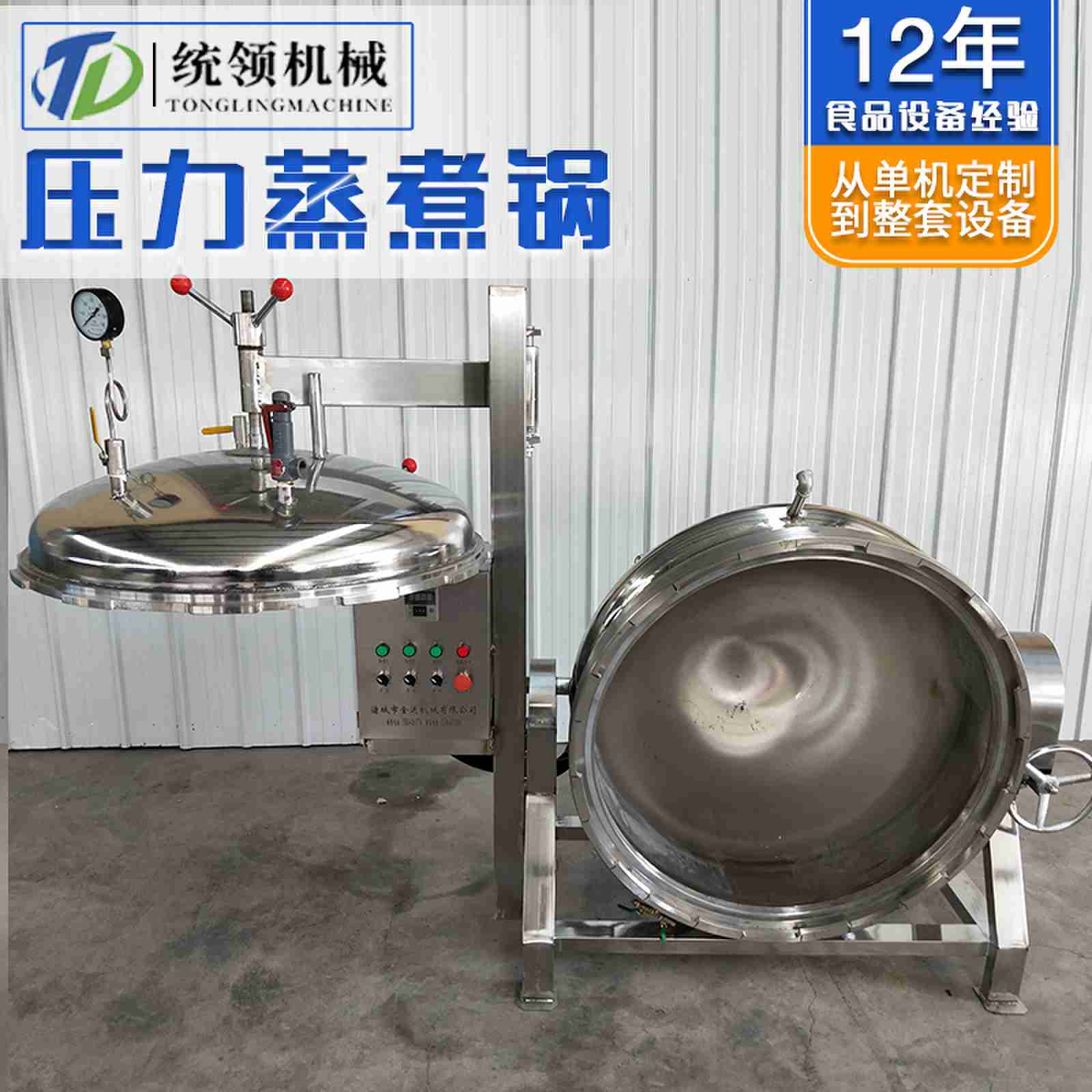 高压蒸煮锅工作原理高压蒸煮锅是以一定压力的蒸汽为热源(也可选用电加热)的高压设备,该设备具有受热面积大,加热均匀、物料沸腾时间短、加热温度容易控制、多种物料任意蒸煮等特点。可缩短蒸煮熬制时间,降低蒸煮。