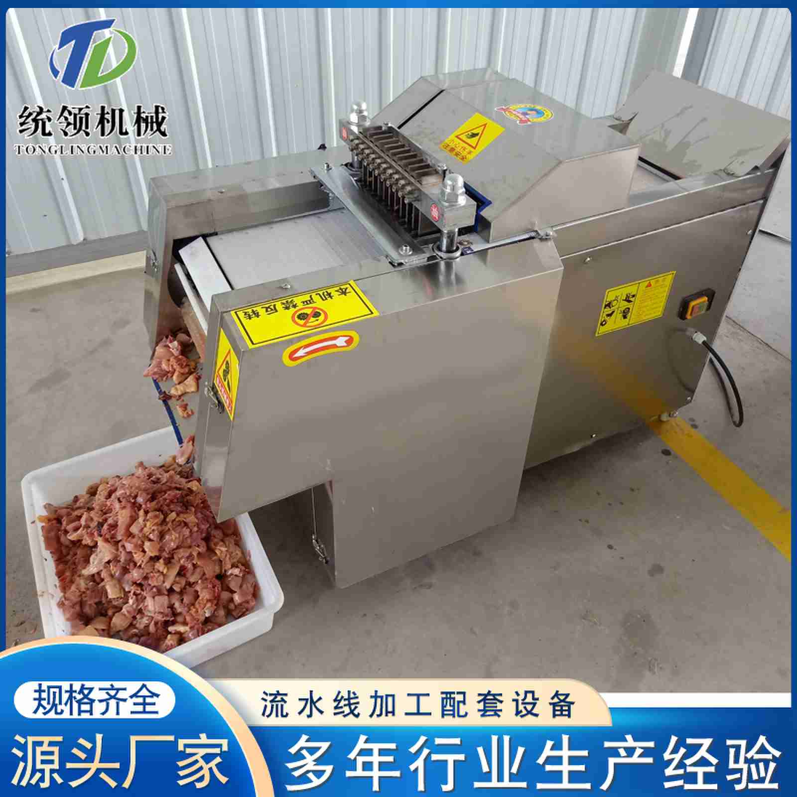 剁块机,属于前期的原料加工(分割)设备。主要部件均采用304不锈钢材料制造,防腐蚀性能好,表面经特殊处理,易清洗,美观大方,耐腐蚀,经久耐用,是肉类加工的理想设备。切割力很平稳、切割效率高、操作简便、便于清洗、维修方便。