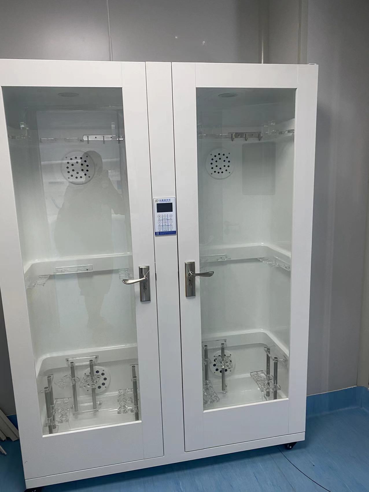 微电脑数显储存柜产品介绍A:数显储存柜分为单门储存柜DX-SX-I和双门储存柜DX-SX-II,硬镜储存柜DX-SXY-I;(型号命名的含义DX为迪新品牌,SX为数显简称,I为单门,II为双门,Y为硬镜简称)B:软镜储存柜规格参数:单门储存柜规格为630*535*2080mm(长*宽*高);双门储存柜规格为1150*535*2080mm(长*宽*高),外部采用多工艺处理的钢塑材料,内胆采用优质高分子材料,独立的开模整体吸塑成型,无缝隙,不藏污垢;易清洗、表面细菌残留低,使用方便、安全、快捷,对内镜无磨损。外壳与内胆融为一体,柜内空间密闭效果优异,外观简洁实用,美观大方。软镜柜内部设有上中下三层内镜悬挂系统,全方位的定位内镜,防止相互碰撞。内设智能化自动控制紫外线,循环风的消毒程序,消毒工作自动累时,另有照明、通风、循环干燥、温度湿度显示等功能。单门可储存4-6条内镜,双门可储存6-12条内镜。C:硬镜储存柜规格参数:规格为:630*535*2080mm(长*宽*高)外部采用多工艺处理的钢塑材料,与软镜的不同是硬镜柜没有高分子内胆。