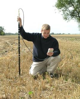 探点直径10厘米,上下高度5厘米的圆柱体样土壤决定的了测量值95%的灵敏度,所以在这个圆柱体积内不能有金属、石头和根系,以免影响测量结果 |