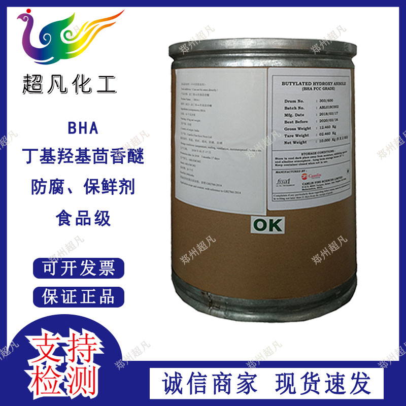 BHA除抗氧化作用外,还有相当强的抗JUN力。作食品抗氧剂,能阻碍油脂食品的氧化作用,延缓食品开始败坏的时间。作的抗氧化剂时,能对酸类、氢醌、甲硫氨基酸、卵磷脂及硫化二丙酸等起抗氧化作用。亦可作饲料的抗氧剂。