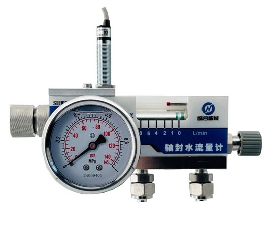 单机械轴封水流量计是用来监测和调节轴封装置内水的流量,监测压力,用于保护轴封的安全运行。适用于各种有轴封装置(包括机械轴封和填料)的设备,如:泵,混合器,筛网,搅拌器等。密封水流量开关用大截面弓形阀取代了针阀,有效的解决了堵塞。