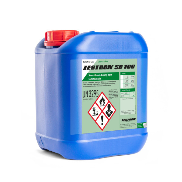 ZESTRON® SD 100是溶剂型清洗液,它设计用于喷淋清洗设备中,来清除SMT网板上的焊锡膏。ZESTRON® SD 100 还可以用于误印线路板的清洗。