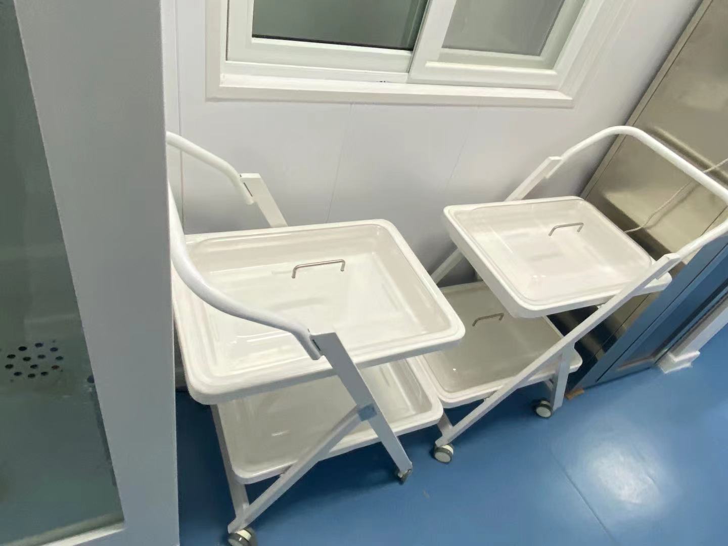 小推车二层、三层独立式设计,周转盘材料由高分子复合材料独立开模制成,车体由钢体喷塑而成,具有耐腐蚀、不沾水、车行顺畅、取放方便等优点。盘内内镜存放导航隔条使污染部分分离。多层设计使客户在使用过程中可将清洁和污染的内镜分层标明后置放,可达到高效周转,避免交叉感染等功效。
