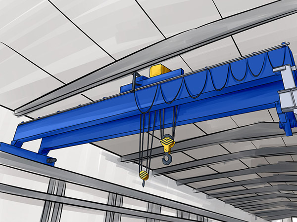 行车桁吊的安装规范是什么:使用电磁盘时必须将吊钩旋转部件用螺钉拧紧,此处是不允许发生转动的。起重量包括电磁盘自重;起重机的总重量不包含电磁吸盘及其附属部件的重量;电磁吸盘位于吊钩下方;钢丝绳上方绳扣起着非常重要的作用,它不仅可以防止钢丝绳意外脱落,由于此类设备的运行速度很快。