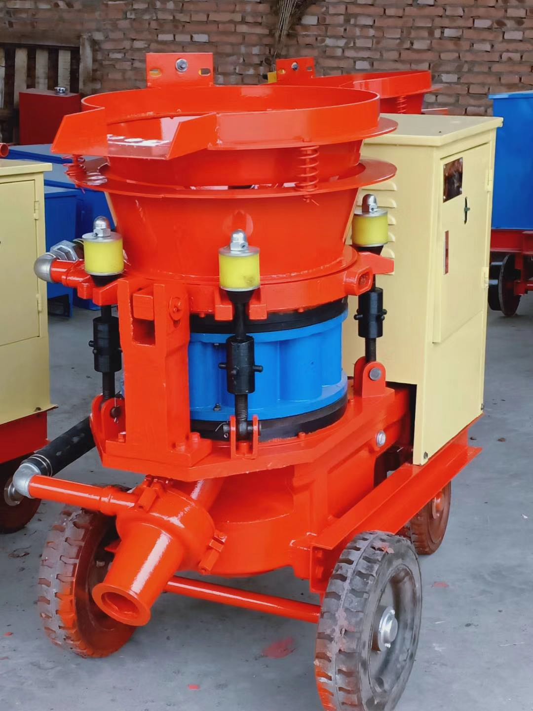 PZ系列混凝土喷浆机利用压缩空气将混凝土沿管道连续输送,并喷射到施工面上去的机械。分干式喷射机和湿式喷射机两类,前者由气力输送干拌合料,在喷嘴处与压力水混合后喷出;后者由气力或混凝土泵输送混凝土混合物经喷嘴喷出。广泛用于地下工程、井巷、隧道、涵洞等的衬砌施工。