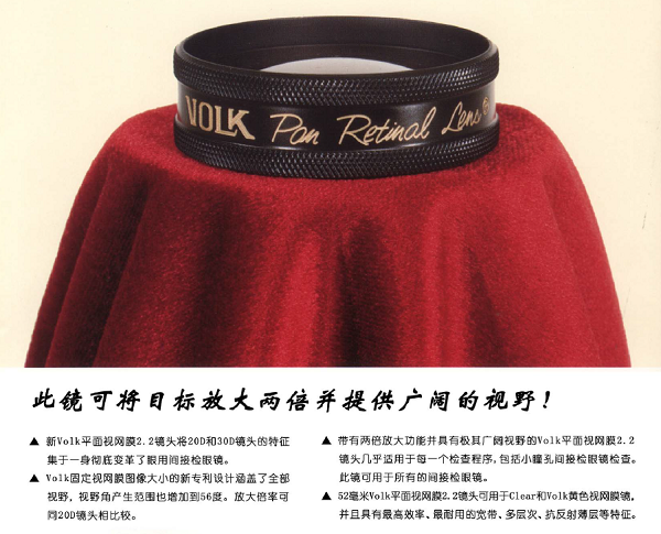 来自美国VOLK的Pan Retinal 2.2镜头可将目标放大两倍并提供广阔的视野