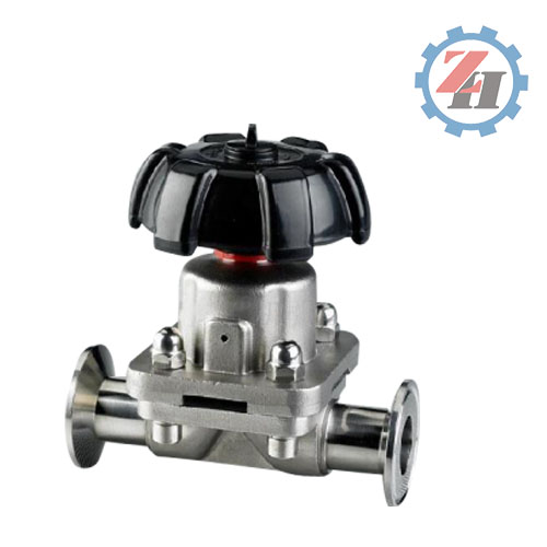 卫生级隔膜阀开启和关闭是由阀杆的上下运动来实现。当阀杆处于上位时,球形膜片向上弯曲阀门形成导通状态。当阀杆由上往下运动时带动阀芯使膜片弯曲,被迫膜片紧帖阀座区或,关闭了管道流体通向路径。
