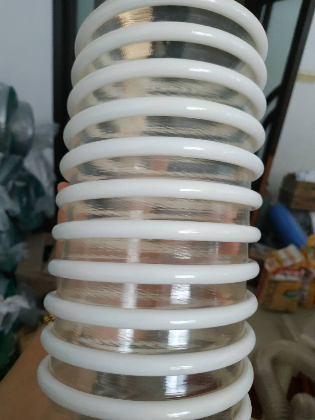 特性:产品采用德国进口耐磨PU材质内嵌塑料合成筋加工而成。较“PU钢丝加强软管”优点:1.内壁非常平滑、可减少流动物的阻力。2.软管受重压后可恢复原状、不变形。3.加强筋较粗并与壁管牢牢粘接,经常在地面拖拽时软管不易损坏;缺点:价格略高于PU钢丝加强软管。