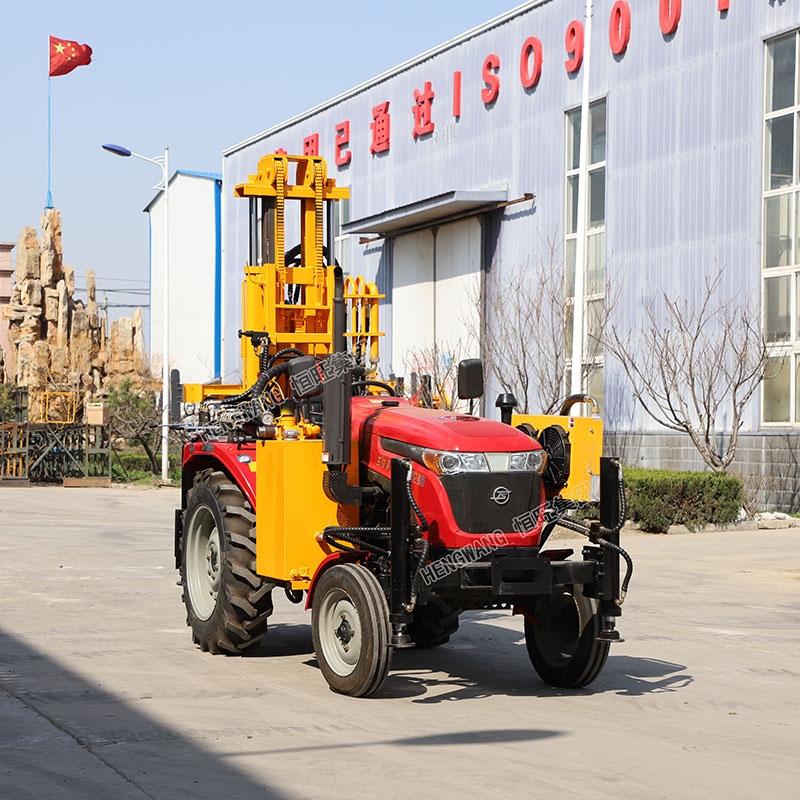 拖拉机气动水井钻机可根据用户需要,分别配用不同马力的拖拉机底盘、不同规格的钻具、空气压缩机、潜孔冲击器及风管等,多种规格均可适用。