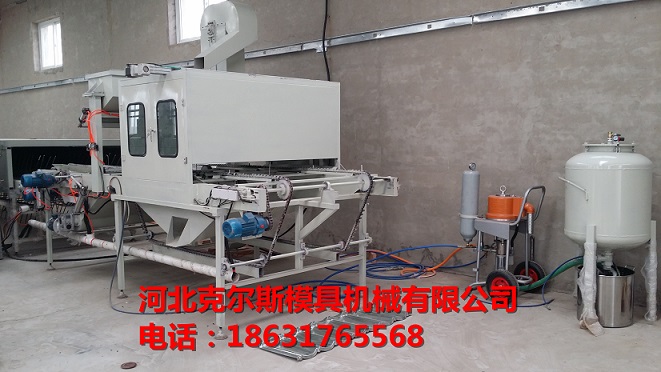 4. 喷涂树脂胶和喷砂进行初次烘干,经过喷砂和烘烤彩砂已经均匀牢固的粘在底板上