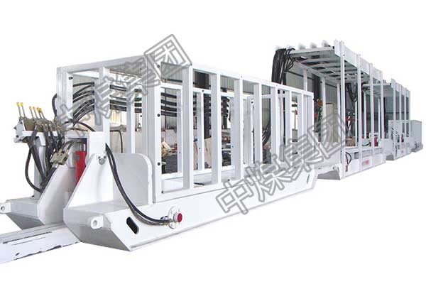 矿用无轨自移设备列车是根据煤矿综采工作面顺槽巷道无轨道运输的需要专门设计的自移式矿用设备列车。解决了通常矿用设备列车靠回柱绞车牵引的弊端,取代传统矿用设备列车靠绞车牵引,通过液压缸实现迈步前进。使矿用设备列车运行更加自如、更加安全。