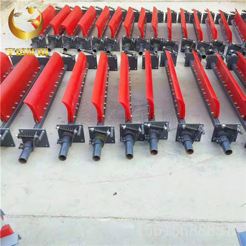 1米皮带聚氨酯清扫器按照位置可分为:头部一道H型聚氨酯清扫器,头部二道聚氨酯P型清扫器,尾部空段V型聚氨酯清扫器,空段中部I型斜拉式聚氨酯清扫器。皮带输送机头部清扫器分为头部一道H型清扫器和头部二道P型清扫器,头部一道H型皮带清扫器安装于头轮附近,与头轮中心水平线成15度角的切点附近,它主要用于清除头轮上方附近粘附物料,因此又称为头道清扫器,也叫H型清扫器,一道清扫器,一级清扫器。头部二道P型皮带清扫器安装于头轮附近平稳工作面处,主要用于清除头轮下方附近的粘附物料,因此我们又称为二道清扫器,也叫P型清扫器,二级清扫器。通常一道清扫器主要为聚氨酯材质,刀头形状为弧形弯曲样式,第二道清扫器可采用聚氨酯清扫器或者合金清扫器,刀头形状为平直形状。