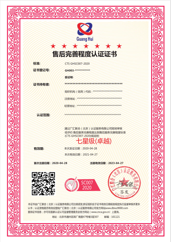 4、七星售后服务成熟度评价认证运行期间及建立体系前的一年内未受到主管部门行政处罚。