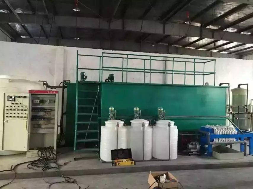 车间电镀污水(助镀污水)——集水池——PH调节池——混凝反应池——沉淀池——中间水池——石英砂过滤——清水池——达标出水