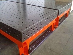 在三维焊接平台模块结构设计中,铸铁焊接平台厂家充分考虑了运用刚性和强度的要求,每个规范的2000mm×1000mm的作业平台载重量可达10t,并能确定其重复定位和夹紧的精度。工装平台和模块的外表通过特别处理,使焊接时发生的飞溅不容易粘在其作业外表。定位件、支撑件和锁紧销外表通过淬火处理。