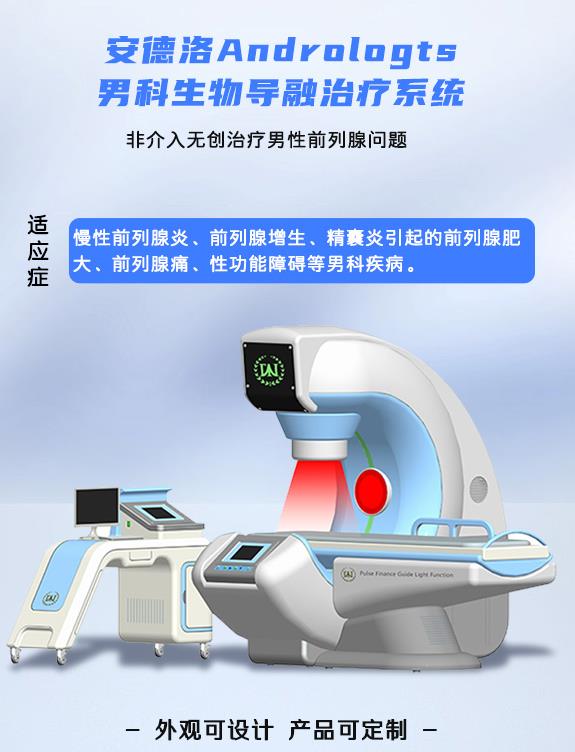江苏纬度电子科技有限公司http://www.jswdtec.com/自主研发的安德洛Andrologts.男科生物导融治疗系统是利用国际上的光能波照射技术、生物导融技术并结合多效应治疗模式技术,利用光能波的温热效应,光化学作用及电磁场的生物学效应来达到治疗疾病的目的,集热疗、磁疗、振动按摩多种功能于一体的现代前列腺治疗仪器。