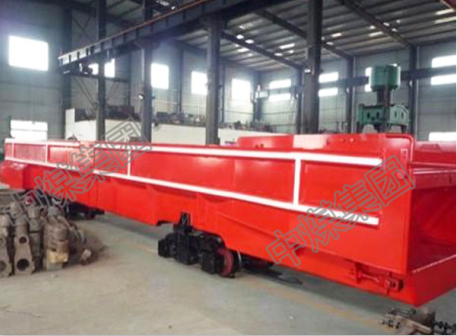SB隔爆梭车的车箱内部设计有一套刮板运输装置,它可以自动的将料铺满整个车箱,并可把料接载到别的梭车上。当梭车被拉到堆料场时,又可利用这套刮板运输装置把料自动卸出。由于整个车箱安装在两个转向行走机构上,利用上述机构可以在两条相邻的轨道上使车箱中心线与轨道偏转一角度,从而可以使车箱内的物料侧卸在轨道的两侧,由于它能实现装料、出渣工作的流水连续作业,前端和侧向均可卸料,提高了工作效率,因此可以大大加快工程的进度。