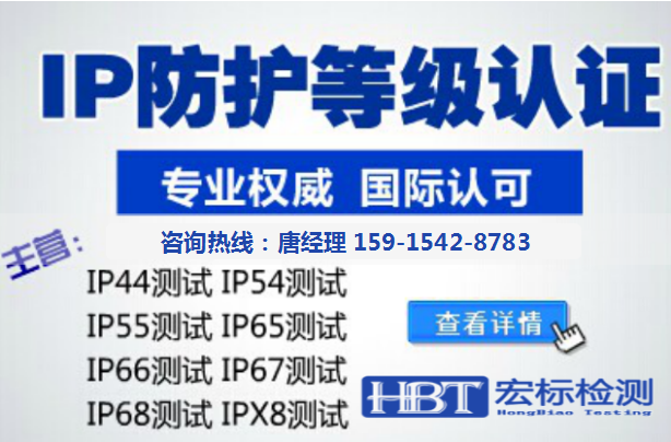 【宏标检测】第三方权威机构,可以为您出具带有CNAS、ilac-MRA中国认可国际互认标识的权威公正的中、英文质量检验报告.在产品的研发、品质的鉴定、市场的拓展等方面发挥重要的作用。具体检验项目、费用来电联系。IP防护等级测试● IP68、IP67、IP66、IP65、IP64/IP55、IP54、IP45/IP44、IP23、IP32等淋雨/喷水/持续潜水浸泡/沙尘试验。