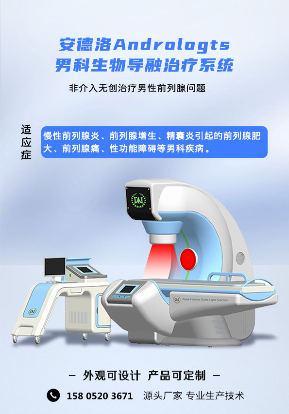 江苏纬度电子科技有限公司http://www.jswdtec.com/自主研发的安德洛Andrologts.男科生物导融治疗系统是利用国际上的光能波照射技术、生物导融技术并结合多效应治疗模式技术来治疗男科的一种非介入无创前列腺治疗设备。是利用光能波的温热效应,光化学作用及电磁场的生物学效应来达到治疗疾病的目的。