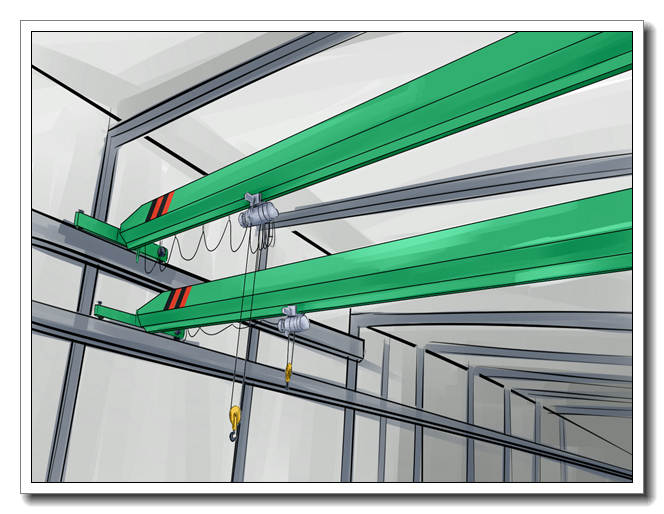 桥式行吊的重要部分是吊梁,行吊设备的吊梁主要分为扁担吊梁和支撑吊梁。扁担吊梁主要用于机械设备的抬吊和起吊屋架、桥架、拱圈等细长而结构单薄的构件,另外,扁担吊梁利用杠杆的原理,可以加大行吊的吊装范围,即加大起重机回转半径,特别是在受起吊高度限制是,如果采用扁担吊梁,可以缩短吊索长度,满足高度的要求。