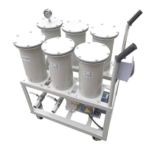 LJL精密滤油机设有六级逐级加密的五层加强型精密过滤芯,轻便灵活、操作方便、不用滤纸、不污染场地、能精细过滤油中的各种杂质。是电力、石化、冶金、机械、铁路等各行业对绝缘油、润滑油、液压油、淬火油、清洗油、冷冻油、防锈油、导热油等油品的高精度除杂,手推式设计,移动方便,特别适合于远距离、加油、抽油及过滤使用。整机外形尺寸很小,它除了小型高效、轻便灵活外,还具有装拆容易,清洗方便,使用中不漏油的特点,克服了传统的板框式滤油机换滤纸时,不可避免要漏油污染场地的致命弱点。传统的板框压力式滤油机需购买大量的滤纸,还要自己打孔,一次少则换十张,多则数十张,油中含水量较大时则十多分钟就需更换一次,否则,一旦纸被击穿,杂质必将穿过滤纸混入被净化的油中,导致前功尽弃。因其采用寿命极长的精密过滤系统(逐级加密式过滤芯),滤芯表面罩上一层复合材料做的高强度的精密过滤膜,当精滤系统杂质堵塞后,可将其拆御下来清洗后再装上去(可反复清洗使用),使其拆装、清洗方便、省事,工艺独特、操作简单。