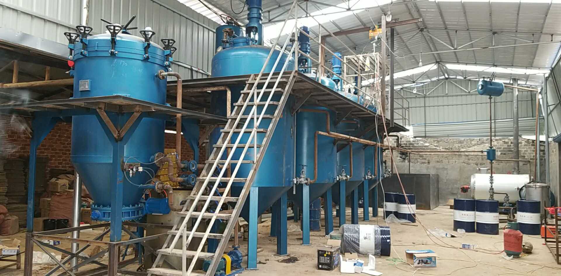 设备操作流程如下:先把废机油打入脱水脱氢罐中加热到150度脱水脱氢,油温降到80度时脱胶,z后把脱完胶的废机油打入脱色罐中加入脱色剂经过叶片过滤机过滤出来即是成品油,无异味,出油率高达85%以上,颜色为接近水白色,不会氧化。