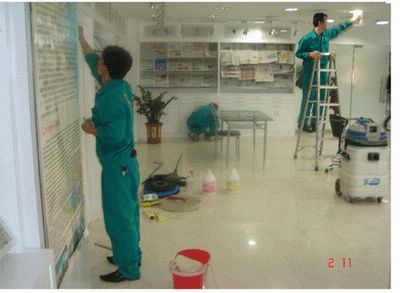 2、地面的清洁保养:对于各种软性地面(塑料、软胶)、硬性地面(大理石、花岗石、瓷砖、水泥、马赛克、木地板)等,进行消毒清洗,彻底清除其地面上的油污、蜡渍、锈渍、水泥渍及装修后残留的其它污物,而后进行起蜡、封地、封蜡、磨光面蜡等专业工序的处理后,使污浊地面迅速变得光洁明亮。