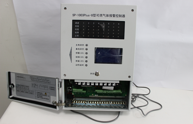SP-1003-4型气体检测报警控制器(以下简称控制器),外形采用壁挂式结构,具有安装简单、操作方便的特点。可适用于各种标准 4~20mA 信号的测量与控制。电子线路采用单片机处理技术,使整机工作状态稳定、测量精度高、通用性强。该控制器配有四个输入通道,八路开关量输出。控制器以巡检方式工作。该控制器可设定两级报警值,到达预定的报警点后发出相应不同的声光报警信号。