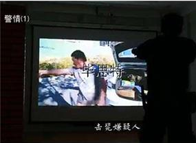 本系统将執法过程中可能遇到的警情以案例的形式预先拍摄好,通过高清投影显示至大屏幕上,再现真实執法情景。参训人员根据投影中的案情发展,通过语言交流、配套模拟警械和武器的使用,与案情进行互动,考核综合執法能力。赵帅 18211169763坐010-56526048