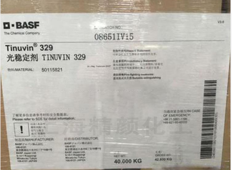 根据基材种类和z终制品性能要求,巴斯夫TINUVIN 329的使用量在0.1%-1.0%之间。可单独使用,或与其他光稳定剂(受阻胺,常规苯并三唑类紫外线吸收剂),抗氧剂(受阻酚,亚磷酸酯,含硫稳定剂,羟氨,内酯)以及其它功能型添加剂共同使用。TINUVIN 329如与受阻胺光稳定剂结合使用,有明显的复合增效作用。