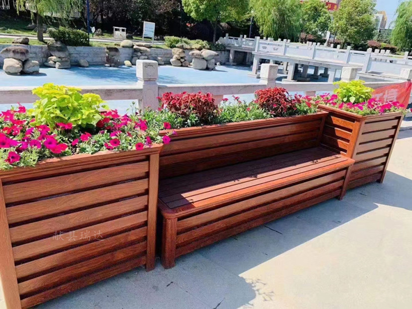 防腐木座椅花箱根据不同场合的需要,样式多种多样。种植各色各样的花种,因为防腐木能够直接接触土壤及潮湿环境的特性,美观还非常实用。为忙碌的人们创造了一片秀色。如果忙碌的城市有颜色,那可能是灰色,而五彩斑斓的植物 ,则让这抹灰色,增添一丝活力的色彩。