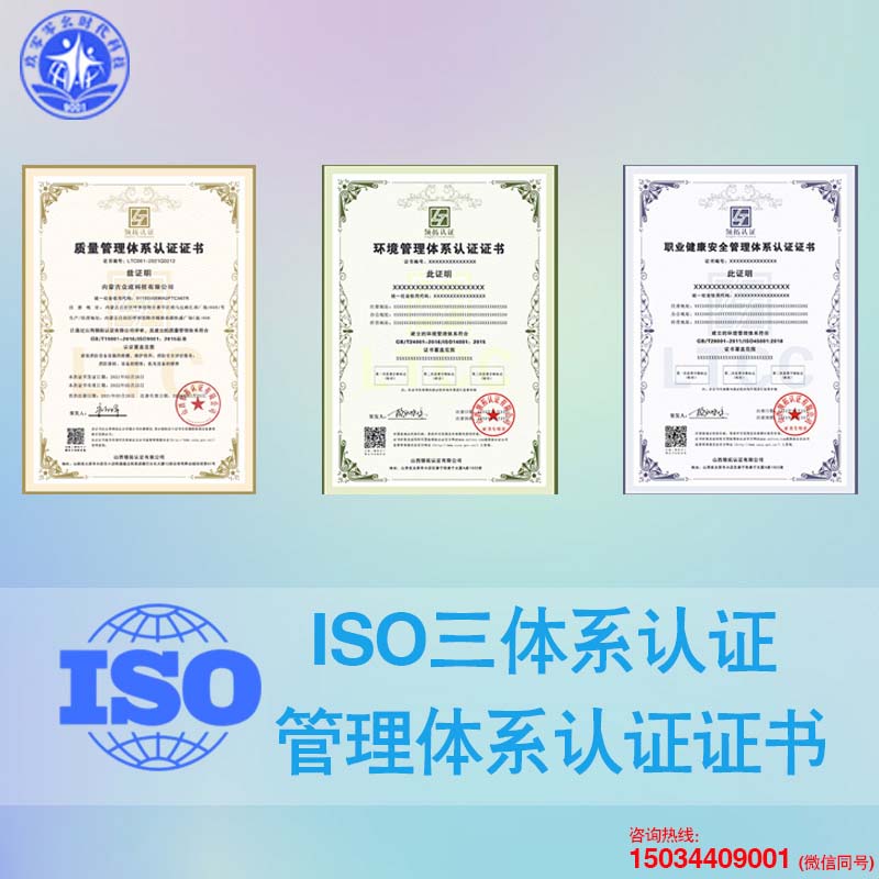 一、ISO三体系标准作用ISO9001:质量管理体系,专门针对企业的质量管理,投标加分,很多大客户要求企业必备这项。