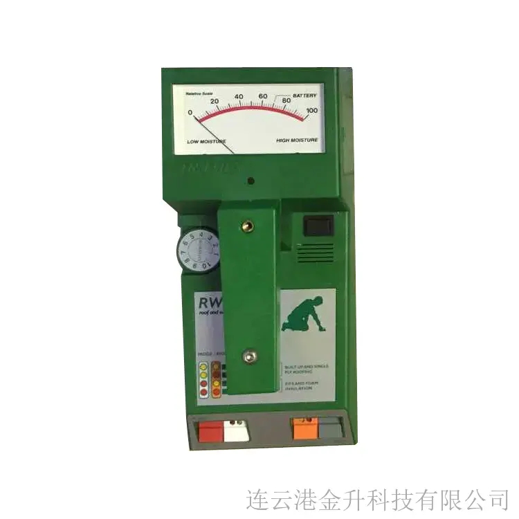 Tramex公司的RWS是一个电子手持式湿度扫描仪及检测仪,其工作基于电子阻抗原理。通过使用电子阻抗测量,无害信号从仪器底部的电极传输至被测区域的深度。这些信号测量读数电子阻抗的变化,然后仪器将电子阻抗的变化转化成相对含水量并即时地显示在清晰的大模拟表盘上。读数即时且连续。同时,RWS配备有一个发生装置,用于高读数的报警。RWS可以以不太贵的价格和不太复杂的操作,对大部分纤维加固EIFS墙面覆盖系统、诸如卷材屋面、非导电单层胶合板、改性泡沫屋面材料的屋面系统给出必要的信息进行湿度评估。